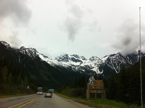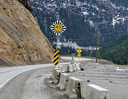過了黃金鎮後,開始出現比較崎嶇的山路,也慢慢進入YOHO國家公園了.沿途有一些施工,車速都有限制.有一次先生不小心超過速限,路旁的施工人員舉著手上的Slow Down牌子提醒呼嘯而過的先生
