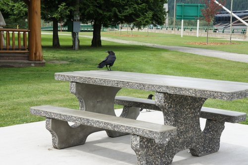 我們決定在服務中心旁的桌椅吃午餐.恩,今天的午餐比較寒酸,是昨晚吃剩的Costco烤雞和麵包,外加一些生菜沙拉