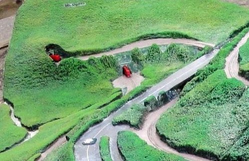 當時太平洋鐵路公司經費拮据,無能力改善,因此申請准許暫用,但是通車後常常發生事故,火車下山減速不易,翻車事件時有所聞;火車上坡更難.需要額外多加4個車頭才拖得動,蒸汽車頭常常不勝負荷而爆炸.直到1909年,鐵路工程師設計出唯一可行的”迴旋隧道”,在山腰處挖掘隧道,將鐵軌拉長10公里,坡度降低至2.2%,才順利解決火車出軌的問題.這種鐵路工程,整個迴旋部分深藏在山洞中,當火車尾還在洞外時,車頭已在山洞的另一頭出現,同時呈交叉狀在車尾之上.所以遊客來到此地,若是正好有超過80節的鐵路貨車通過,才有機會看到火車頭尾在隧道外交叉的奇景.